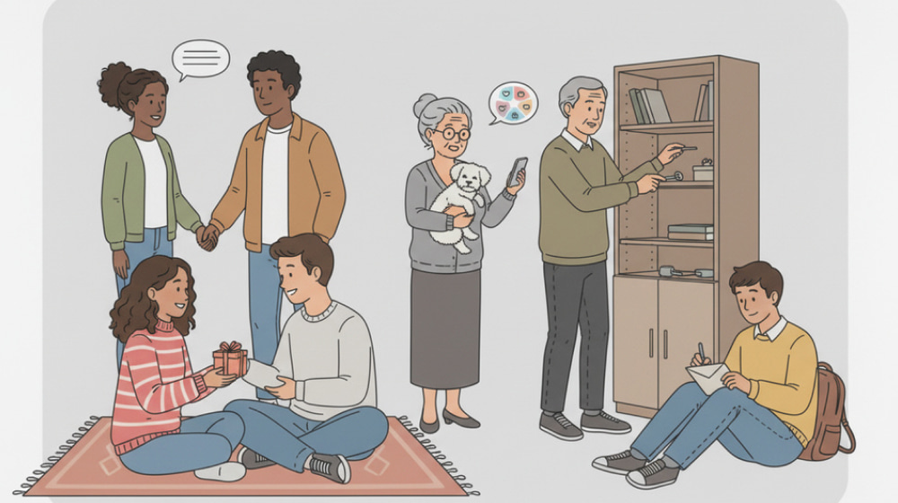 | Gifts | Feeling remembered through thoughtful, symbolic tokens | Favorite snack, a bookmarked article, a flower, a small keepsake | Leave a tiny surprise that reflects a recent conversation |