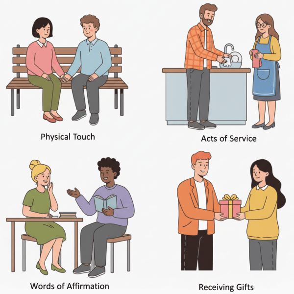 | Words | Feeling seen through affirming language and sincere feedback | Specific praise, encouragement, appreciative notes, warm texts | Send a short message naming one concrete thing you value |